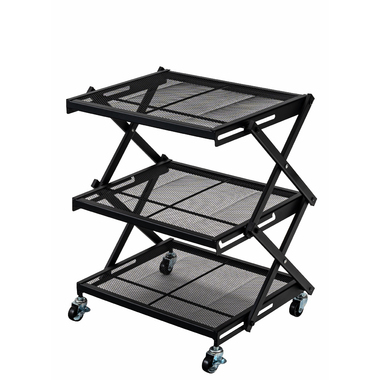 【検索キーワード】ラック 折りたたみ 折りたたみラック キャスター ストッパー付き 高さ調整 3段 スチール アイアン シンプル モダン ブラック 黒