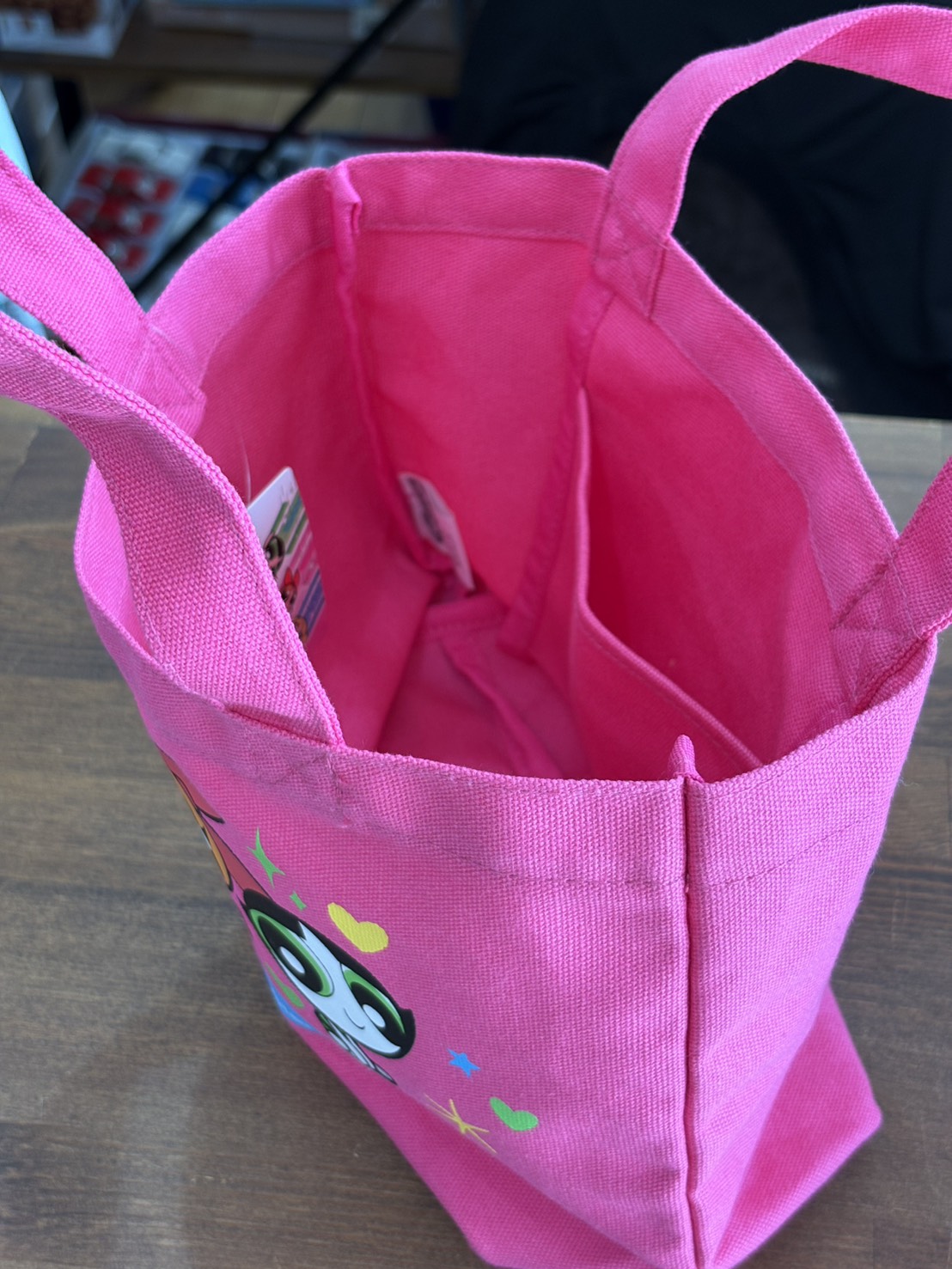 カラータイプのトートバッグに、パワパフガールズのかわいいイラスト♪